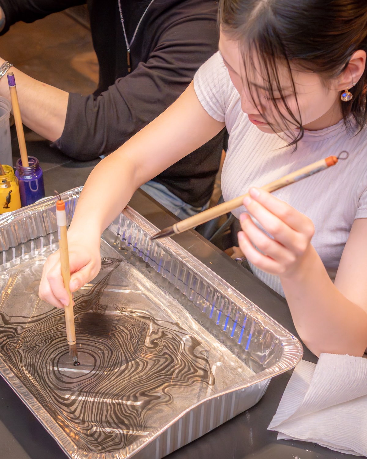 In this class, you will learn how to gently drop ink onto the surface of water and guide the ripples with your breath, brushes, or even the subtlest movements of air. The resulting designs are then transferred onto washi paper and even onto fabric items such as handkerchiefs, creating one-of-a-kind works of art.